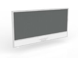 Studio screen with ducting to fit Agile individual desk. White powdercoated 50mm frame and lightweight, pinnable core with Breathe fabric. Includes desk hung screen brackets. Optional bracket-mounted cable tray. Features 50mm thickness Breathe fabric all over Pinnable core Includes desk