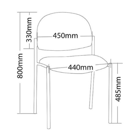 Features Heavy duty black powdercoated metal frame Plastic under pan Stackable (Maximum 4 chairs with 4 leg base on floor)