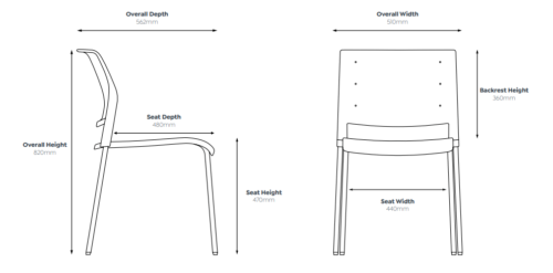 Product Features Dimension: W505 x D565 x H820 mm Chrome frame Colour – Black With arms Upholstered fabric back &Â