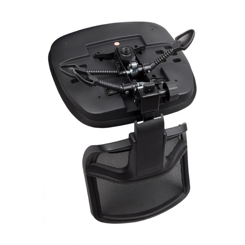 - Stocked in Black Fabric seat with Black Mesh back