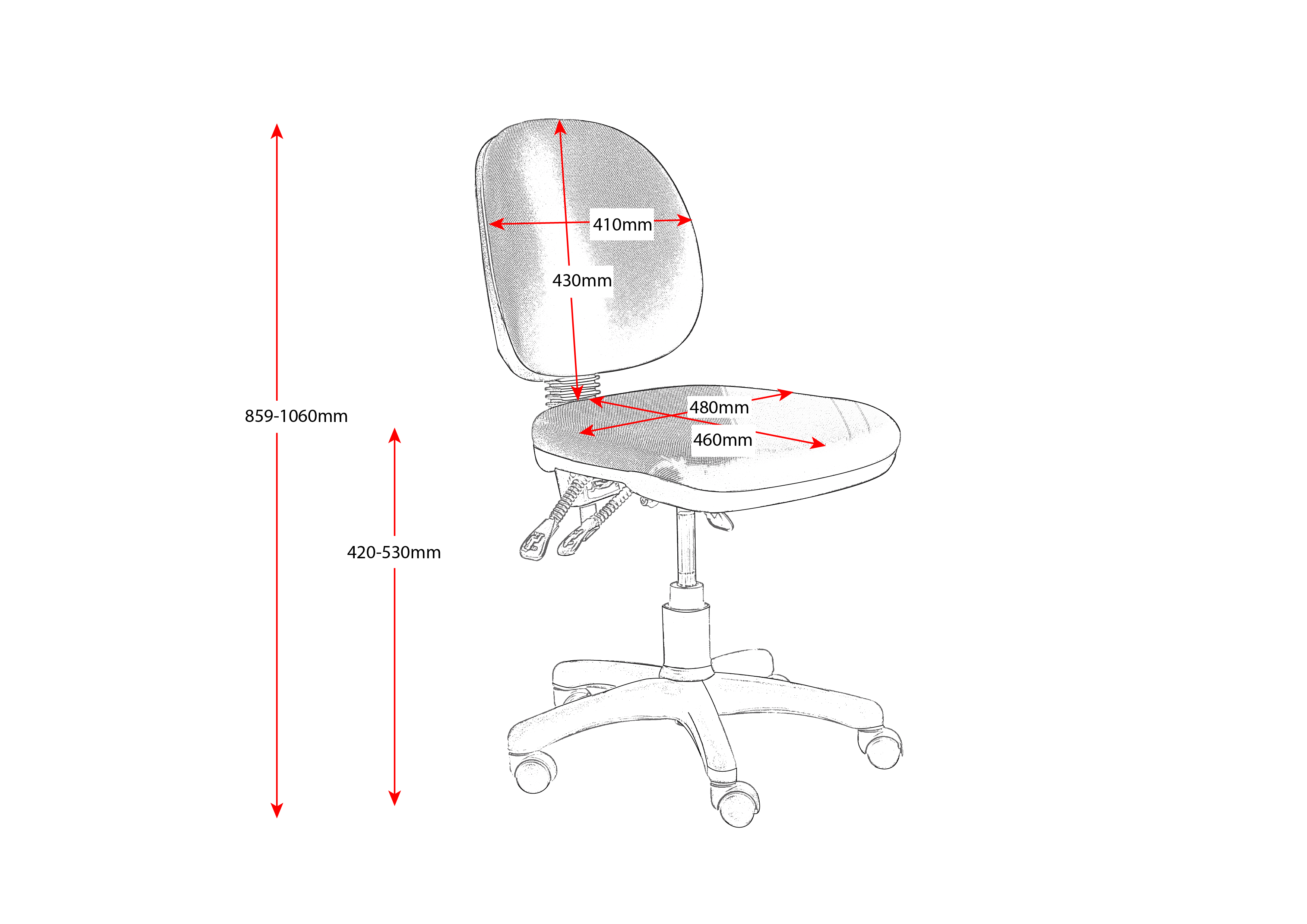 - Seat Dimensions : 480W x 460D x 420-530H mm