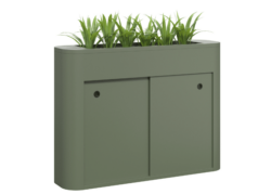 The Harpo planter showcases a remarkable level of sophistication, boasting its elegant soft curved ends and convenient sliding doors that provide optimal storage. This design effortlessly complements any office space, providing a stunning showcase for both artificial and real plants.