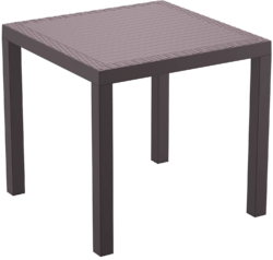 The Orlando Table is an injection moulded resin table, the non-metalic frame will never unravel, rust or decay, with rattan edges it matches the rattan chairs. Reinforced with glass fibre to strengthen the legs and boost the weight capacity. Strong yet lightweight, this table will add class to your venue. It’s sleek profile is pleasant to the eye so this table is as charming as it is functional. Very easy to clean, just hose it down.